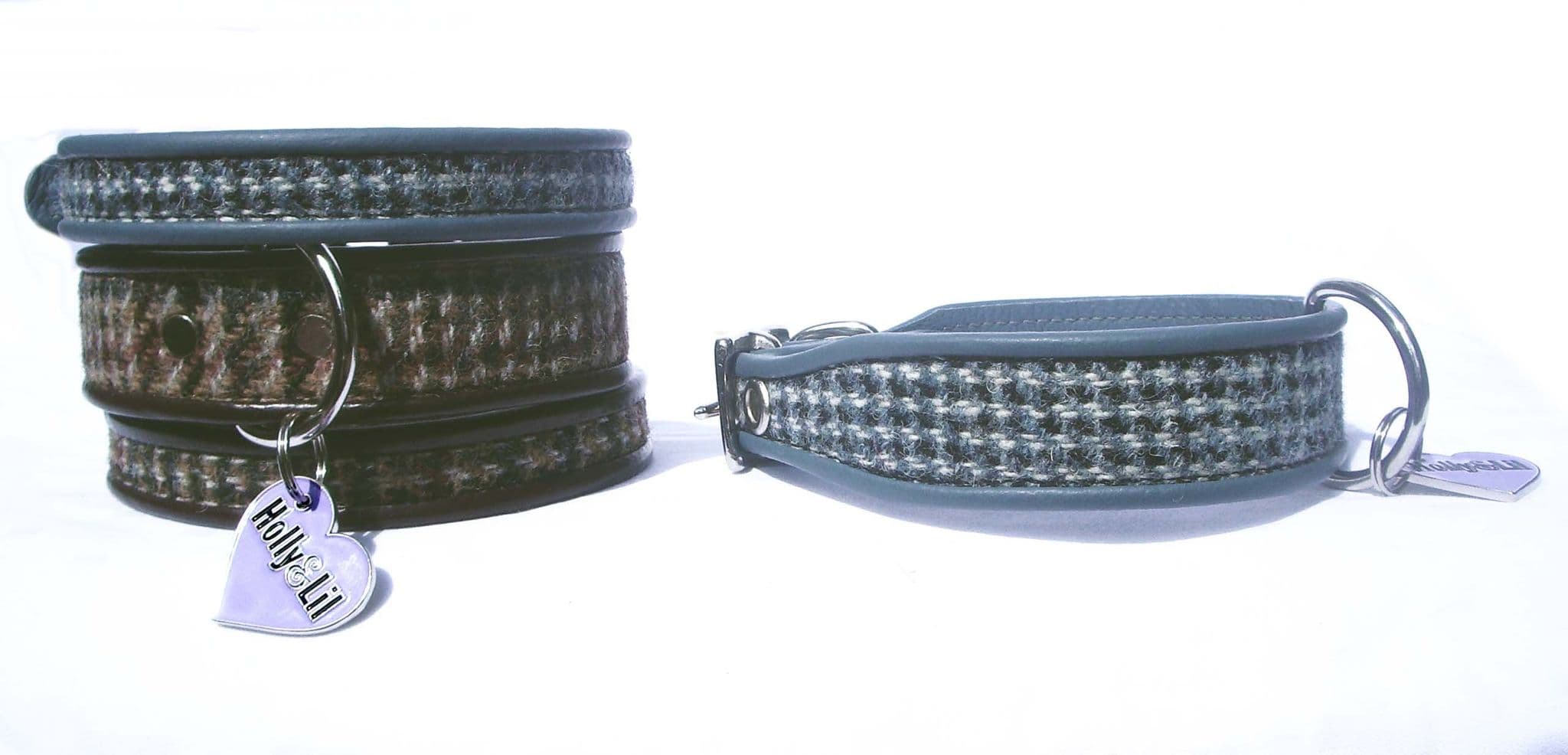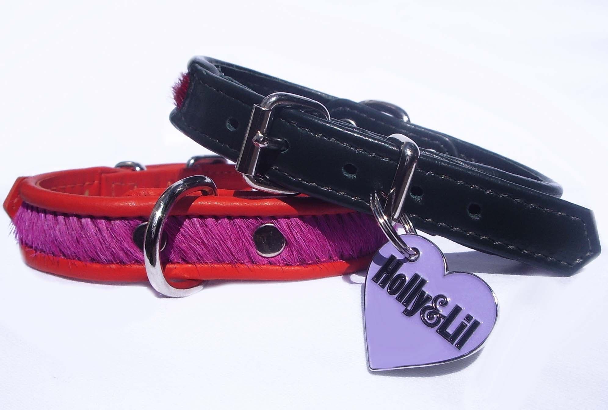 Almost all Holly&Lil designs are available as 'Slims' or as our signature 'Wides' which have the slim element under the chin (for the dog's comfort) and the wide part on the back of the neck with a D-ring fitting for the lead. Holly and Lily love their Wide collars as they show through their long fur and don't cause matting or breakage of the guard hairs.
